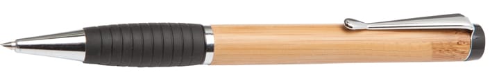 Stylish bamboo body ball-point pen; medium nib; comfortable rubber grip; metal clip. Writes beautifully.