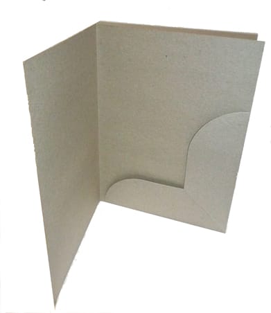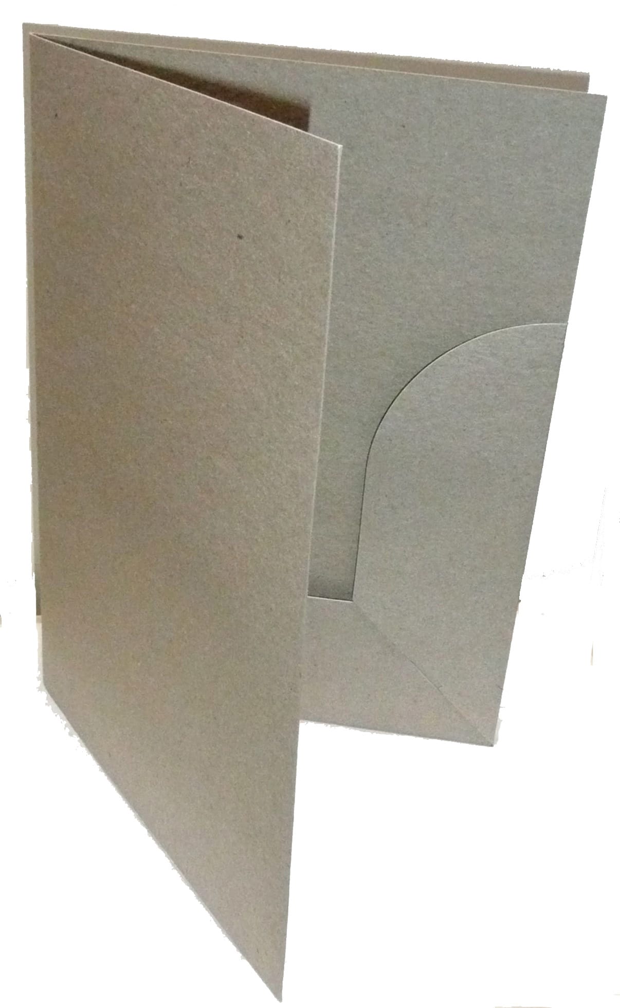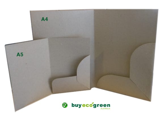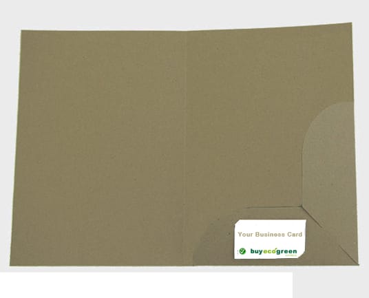 Single Pocket 100% recycled presentation folders in 340 gsm Eco Brown recycled paper. Strong board presentation folder with business card slits on pocket flap. This is the size for A4 paper, leaflets and documents, marketing, brochures, flyers and more. Made in Australia from post-consumer waste paper that is paper collected from kerbside, offices and industry. Folder colour is grey/brown.